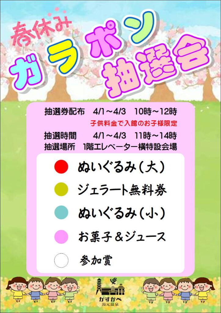 4月1日~4月3日の3日間でお子様向けガラポンイベントを開催します。 対象の3日…