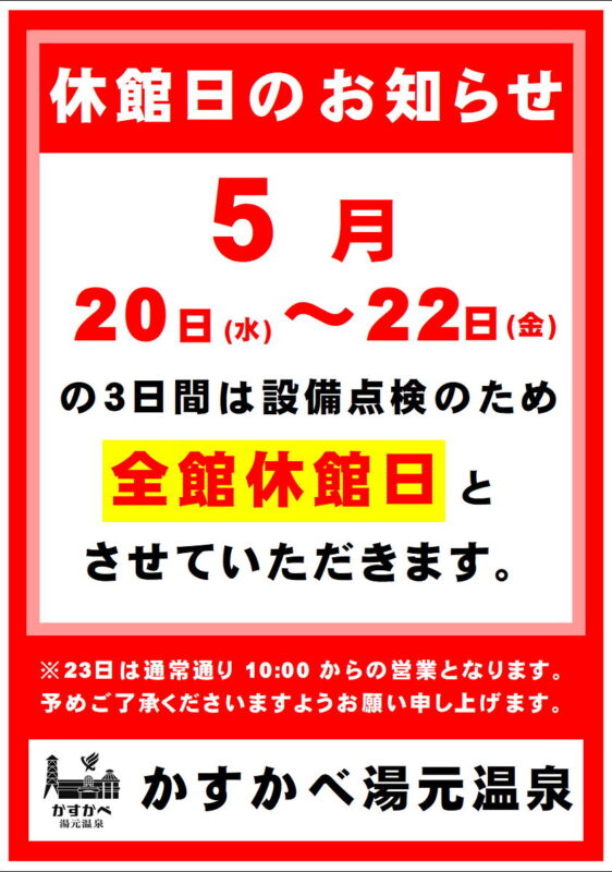 開催は急遽変更となる場合があります。 当館のサウナは高温設定となっております。 …