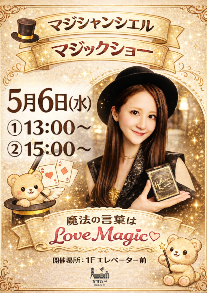 マジシャンシエルさんによるマジックショーが 5月6日(水)開催されます。 日時:…