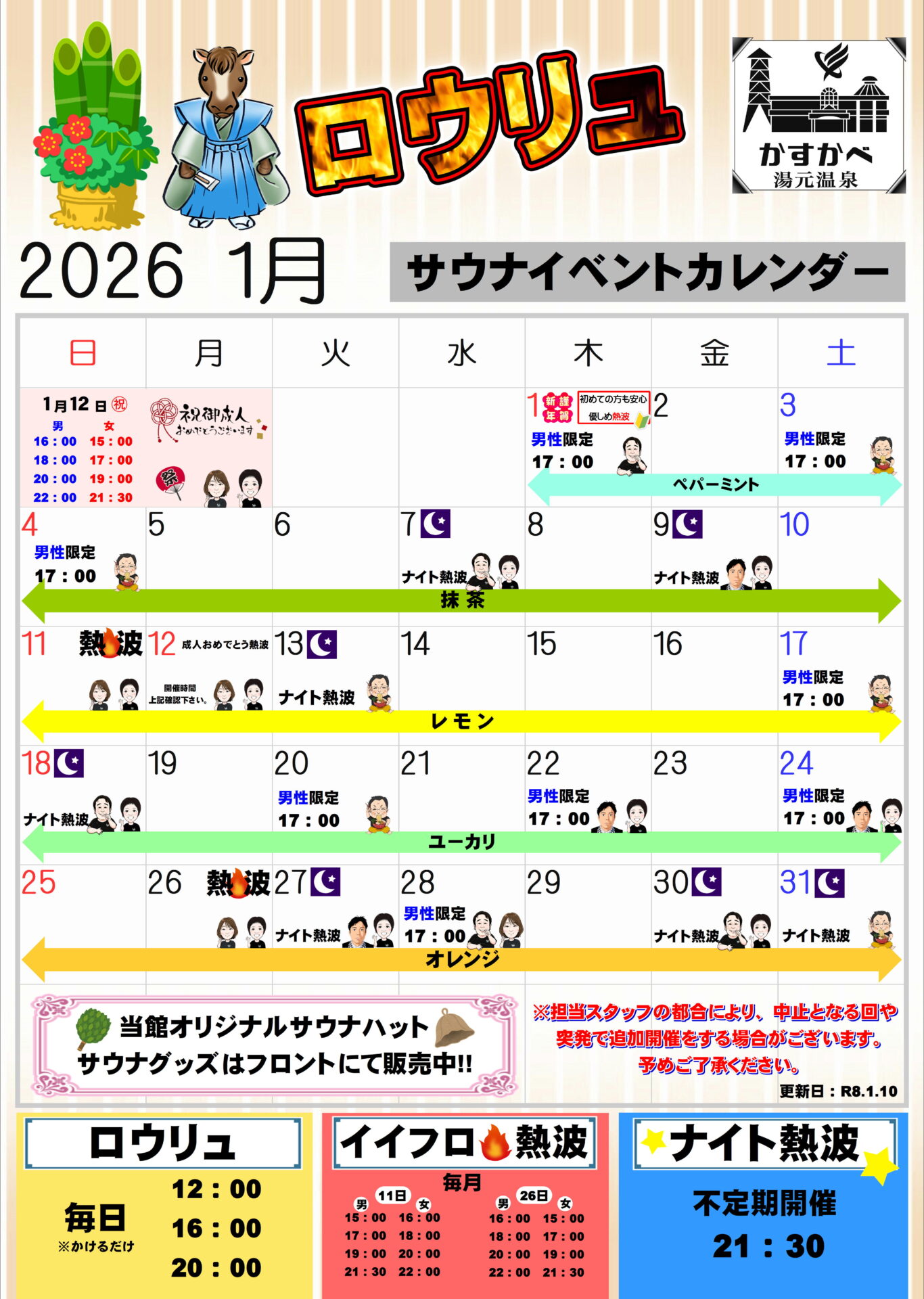 「サウナ熱波倶楽部」所属 拉麺清水による1月後半の予定です。
