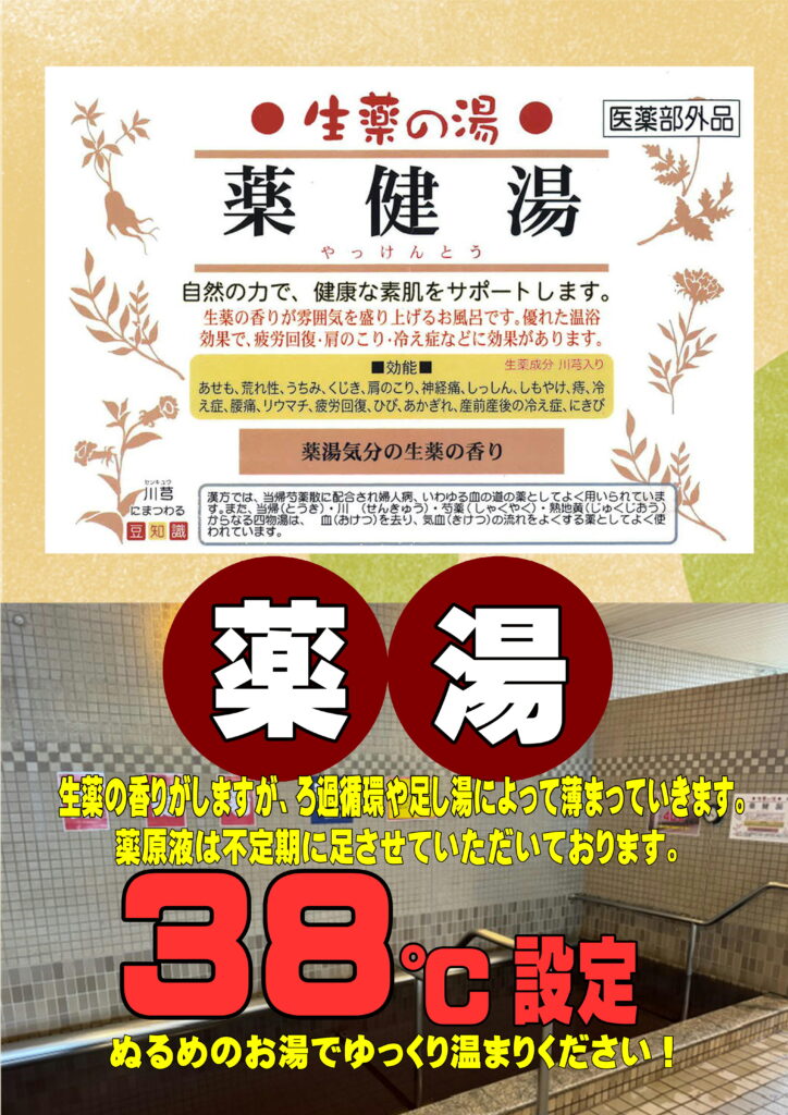 当温泉は、ろ過した天然温泉を掛け流しの状態で常に注ぎ、お客様に安心して温泉をお楽しみいただけるよう清潔な水質を保っています。